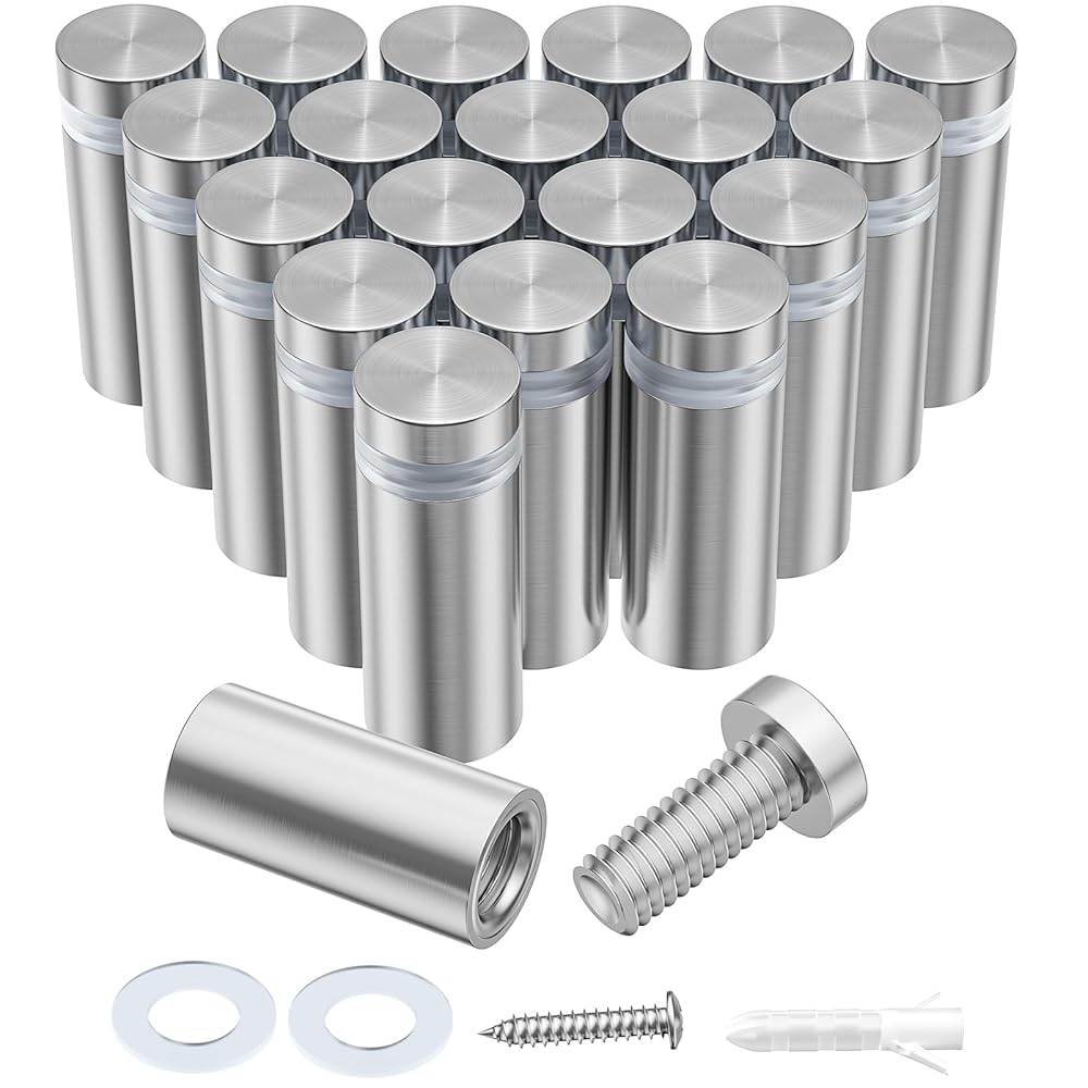 【Great Value Pack】Includes 20 pcs Diameter 1/2 in. Base Length: 1 in. Cap Height: 1/4 in. 1/2" x 1"(13mm × 25mm) standoff screws and all required mounting hardware; each sign holder standoff comes with 2 rubber cushions to protect your sign while keeping it mounted securely and neatly