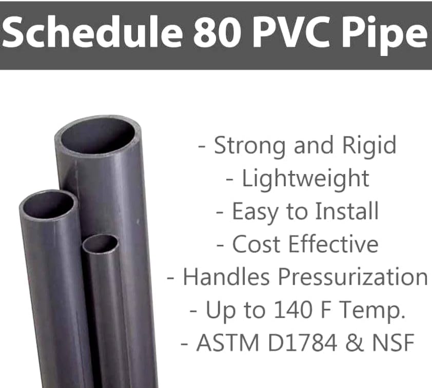 Elevate your industrial and water flow applications with our high-performance Schedule 80 PVC Pipe in sleek grey. Designed for durability and versatility, this industrial-grade pipe is a game-changer for your plumbing projects. Boasting exceptional heat resistance of up to 140 degrees F, our PVC pipe ensures reliable performance even under intense temperatures. Its standard 1†2' 3' 4' and 5†sections make installation a breeze, although a coupling is required for seamless assembly. Available in various sizes ranging from ½â€ to 4â€, our Schedule 80 PVC Pipe fits a wide range of applications. Whether you're working on high-pressure projects or tackling corrosive jobs that demand chemical resistance, this pipe is built to surpass your expectations. We recommend using a robust primer and cement during installation to ensure the longevity and stability of your pressure pipe. Opt for a trusted medium set PVC glue for sizes up to 4†to complete your projects effortlessly. Rest easy knowing t