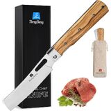 HANDLE:The natural olive wood knife handle, hand polishing and grinding by professional artisan, well texture and feel good. offer anti-skid property and comfortable grip, and enhance durability and toughness, can help you get good hold feeling and non-slip effect, provide you more comfortable using experience.