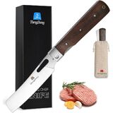 FOLDABLE KNIFE: Blade 4.8in. Full length 10.25 in. 5.4in length when folded, Net weight 180g, The suitable length is convenient to fold and carry, can meet the needs of daily cooking for camping or outdoor activities. Also applies to small kitchen knives for home cooking