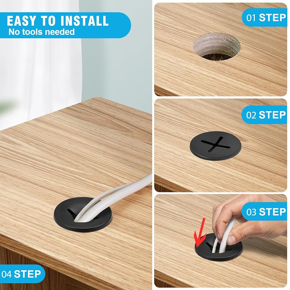 UPGRADED CABLE MANAGEMENT -- The unique cross-shaped rubber center effectively reduces friction, and minimizes cable wear from rough desk edges. Cables pass through smoothly without damage, and the flexible opening ensures a snug fit for multiple cables while keeping your workspace tidy.