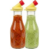 Upgrade your kitchen prep with these 32oz tall salad dressing shaker bottles from kitchentoolz. Made from durable, clear glass, each bottle is designed to handle larger batch sizes of marinades, sauces, or dressings without the mess. A wide-mouth top makes it easy to fill, while the silicone pour spout offers smooth, controlled serving. Whether you're prepping ahead for the week, mixing up a marinade for the grill, or organizing sauces for a crowd, these bottles get the job done. Each one includes a tamper-evident cap to keep contents sealed and fresh. Perfect for home cooks, BBQ enthusiasts, or anyone who makes recipes in bulk, these reusable containers are a clean, reliable way to cut down on plastic and keep your kitchen organized.