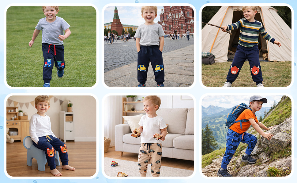 Material:(100% Cotton Toddler Boys Pants — Skin-friendly & Breathable)Made of high-quality 100% cotton fabric, these toddler boys pants are ultra-soft, breathable and gentle on kids' sensitive skin. Lightweight and durable boys cotton pants perfect for all-day play and daily wear for boys aged 2-7.