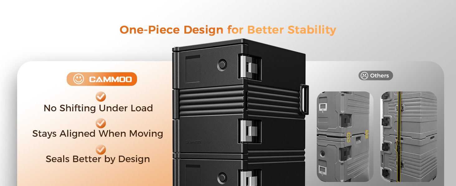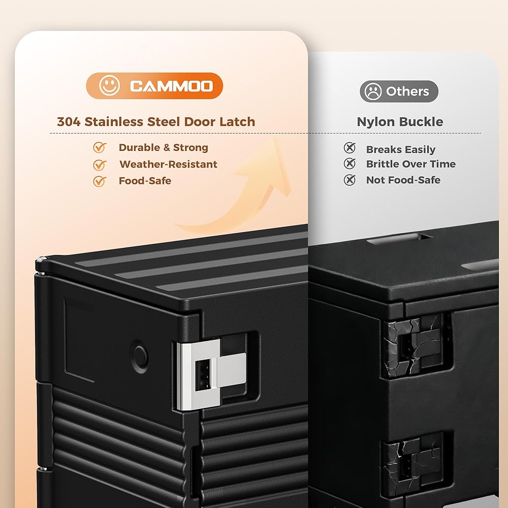 DUAL-ZONE HOT & COLD CONTROL – 190QT capacity with two independent zones: upper holds 6 full-size pans for hot foods, lower holds 6 for chilled items. Transport complete meals in one trip. Maintains safe serving temperatures for 4-6 hours—no electricity required.