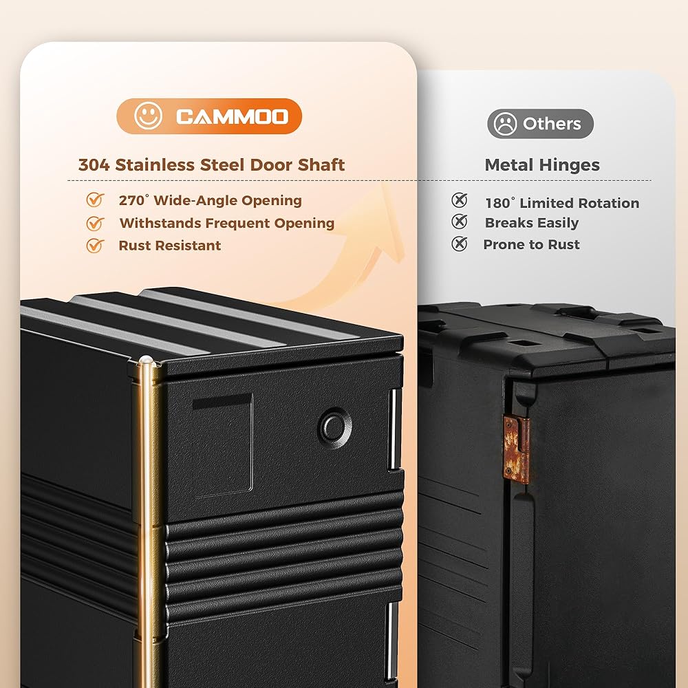 304 STAINLESS STEEL HARDWARE – Commercial-grade 304 stainless steel latch outperform nylon that cracks or warps. 304 stainless steel door shaft enables full 270° opening—compared to competitors' 180° hinges that are more prone to rust and can crack or shatter under stress. Faster loading, easier cleaning.