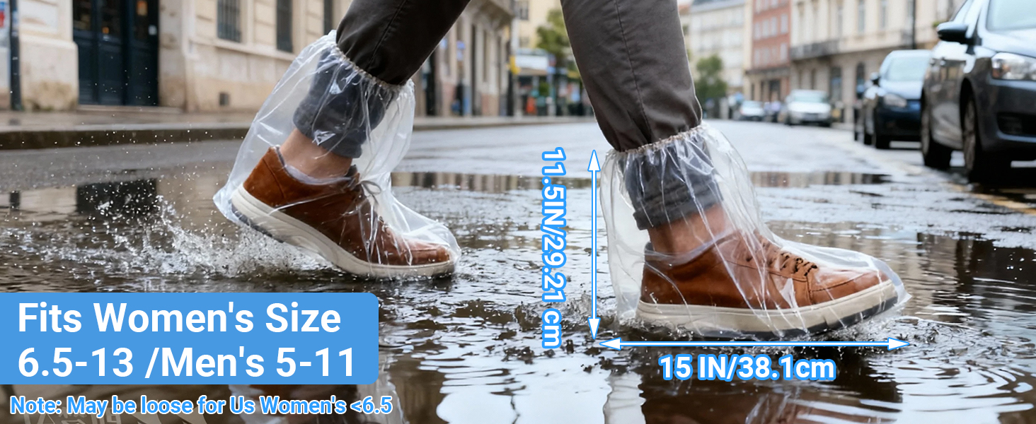 Keep Feet Dry & Clean: Fight back against rain, snow, slush, and mud! These crystal clear plastic overshoes form a waterproof barrier, shielding your favorite shoes from the elements. Arrive at your destination with completely dry footwear, no matter how bad the weather gets.