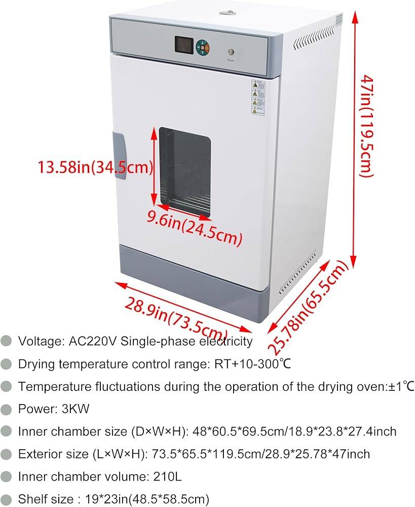 [High Quality Drying Oven]: The shell is made of high quality cold-rolled steel plate, surface electrostatic spraying. Adopt new type synthetic silicone seal with good sealing effect, can run at high temperature for long period of time.