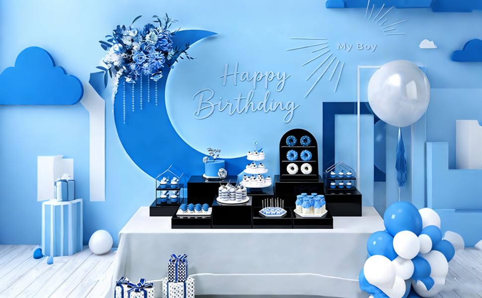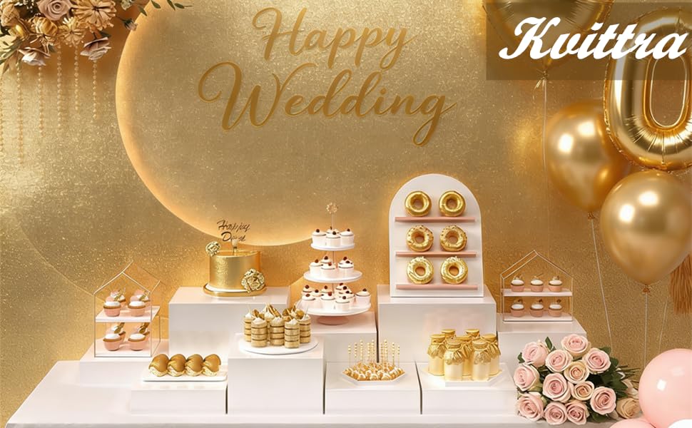Built from Premium, High-Gloss Acrylic: Crafted from durable, high-grade ABS acrylic, these risers offer the perfect balance of strength and lightweight portability. The sturdy construction reliably supports cakes, charcuterie boards, and decorative centerpieces, while the crystal-clear, high-gloss finish (in white) adds a touch of modern elegance to any theme.