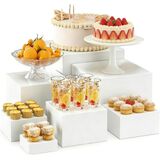 Curate a Stunning Presentation with 6 Graduated Heights: Elevate your event decor with this complete 6-piece set of white acrylic risers. Sizes range progressively from 3"x3"x1" to 8"x8"x6", allowing you to create dynamic, multi-level displays. Perfect for adding visual interest to dessert tables, buffet lines, or retail counters, ensuring every item, from petit fours to potted plants, gets the attention it deserves.