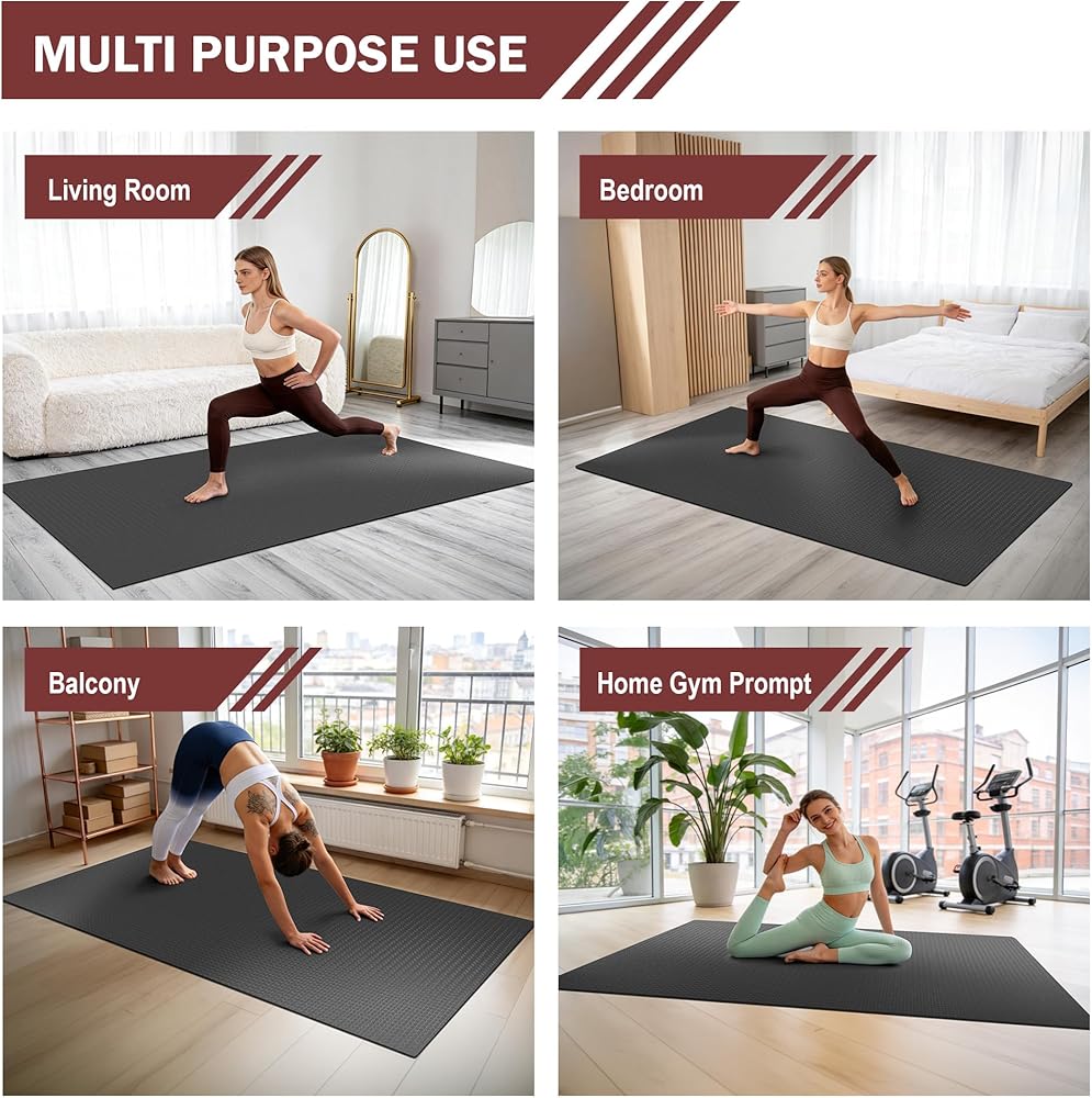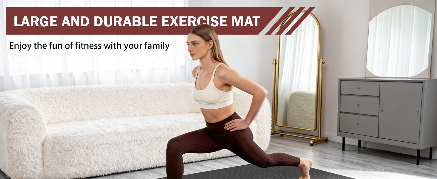 【Tear-Resistant & Versatile】 Made from high-quality materials. these large gym mats are solid and durable, designed to resist abrasion and scratches. They prevent wear and tear from high-intensity training and frequent use. This large exercise mat can be used for workouts, gym flooring for yoga, cardio, stretching, and strength circuits, making it perfect for the whole family — including your furry friends. Enjoy fun and togetherness with this large exercise mat.