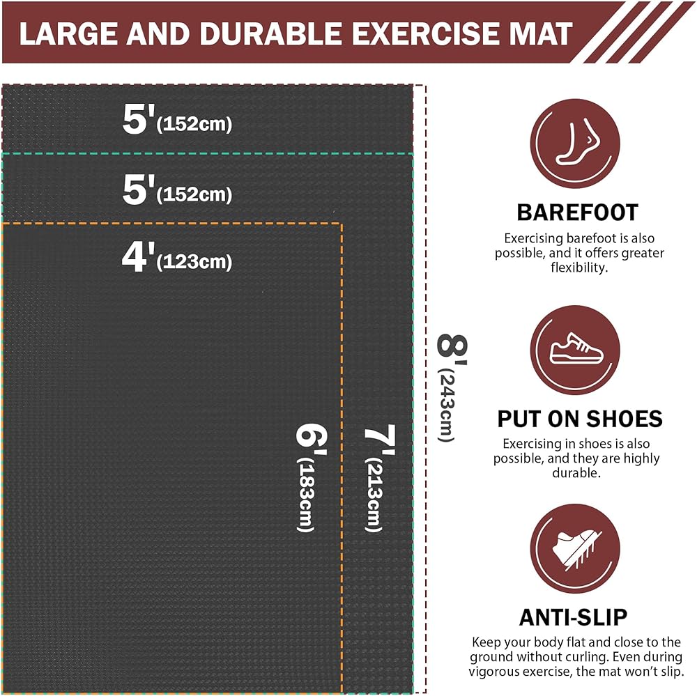 Stepwaver Extra Large Exercise Mat, 6'x4'/7'x5' /8'x5' (6mm) Thick Workout Mat for Home Gym & Garage Flooring, Shoe-Friendly, Non-Slip, Ultra Durable, Thick Large Workout Mats for Home Workouts