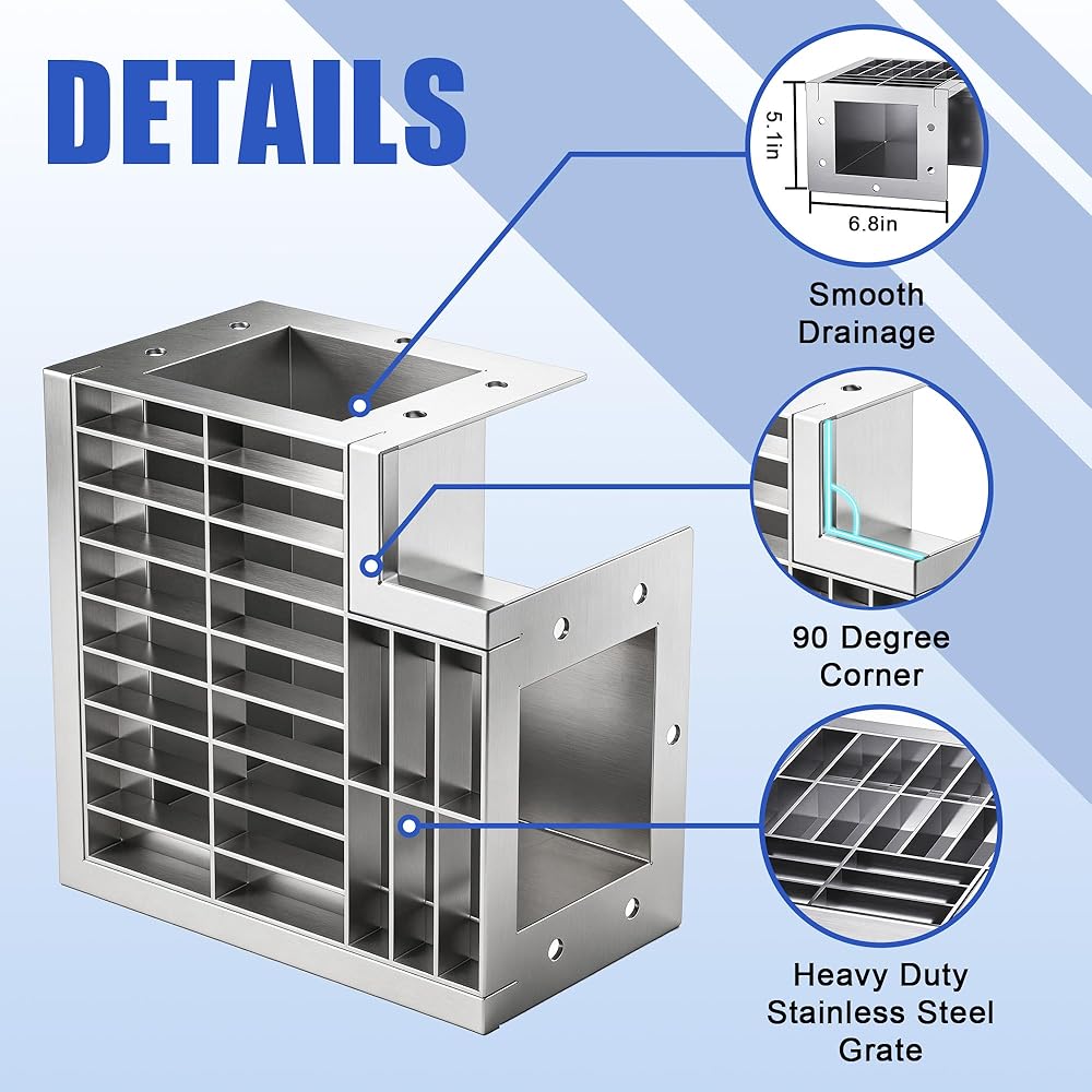 90-Degree Corner: Designed for 90-degree directional changes in drainage systems, this heavy-duty drainage trench offers a precise fit that helps facilitate smooth water flow.