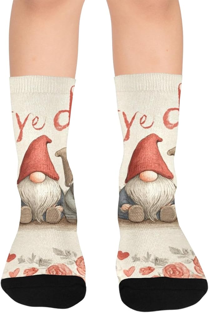 Red Rose Gnome Notes Beige Hiking Socks - Toddler Boys & Girls Warm Thick Thermal Winter Crew Socks for School, Daily Wear & Outdoor Activities