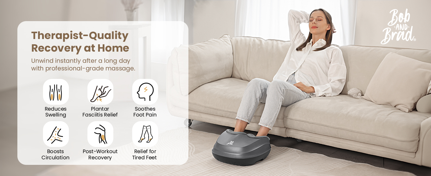 Endosed by BOB AND BRAD-Professional Recovery: Designed by famous physical therapists, this shiatsu foot massager delivers professional-grade relief using 3 kneading intensity levels (Low/Med/High). Unlike generic models, this allows you to customize the massage from a gentle daily touch to deep tissue therapy, mimicking skilled hands. Whether for post-workout recovery or relaxation, trust the experts to improve your foot health.