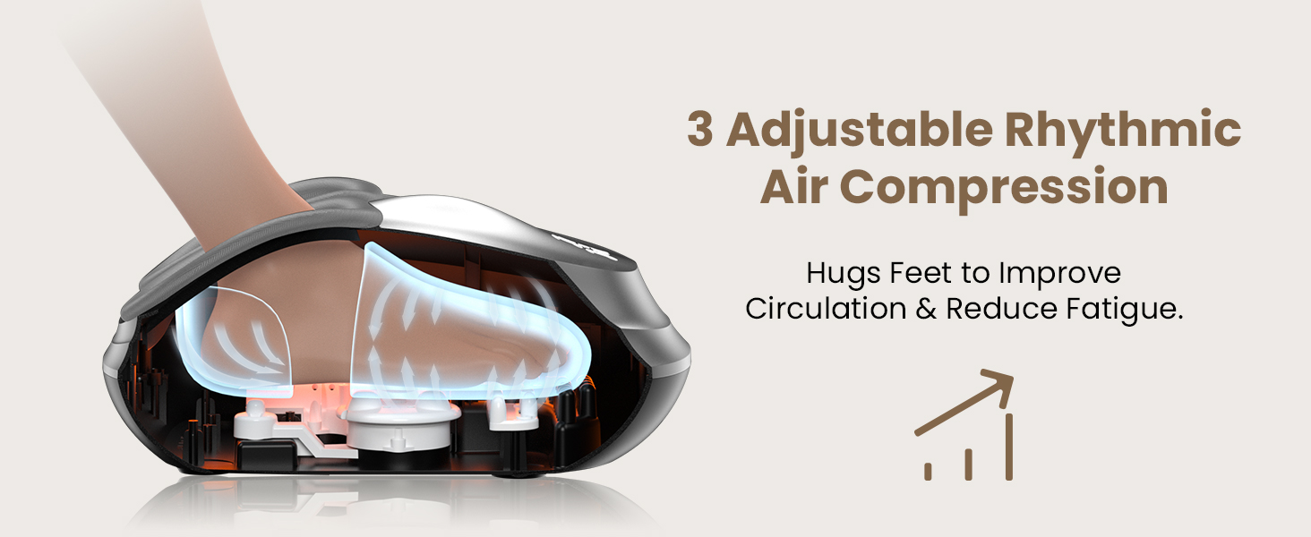Targeted Relief for Plantar Fasciitis: We concentrated power on the Arch and Heel—the root sources of pain. This foot massager for plantar fasciitis combines deep-kneading with 3 air pressure settings (Low/Med/High) to secure your foot and target the fascia. By focusing intensity on the mid-foot, we provide effective relief for plantar fasciitis without the aggressive crushing of toes found in other devices.