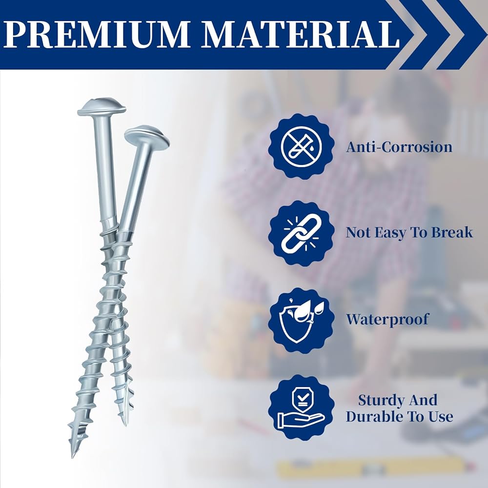 【Zinc Coated】: Pocket hole wood screws are made of carbon steel, sturdy and durable. Zinc coating fully protects the inside of the pocket screws from peeling off and provides aggressive rust resistance. Designed for pocket hole construction in woodworking projects and keep your wood working builds under the outdoor for years