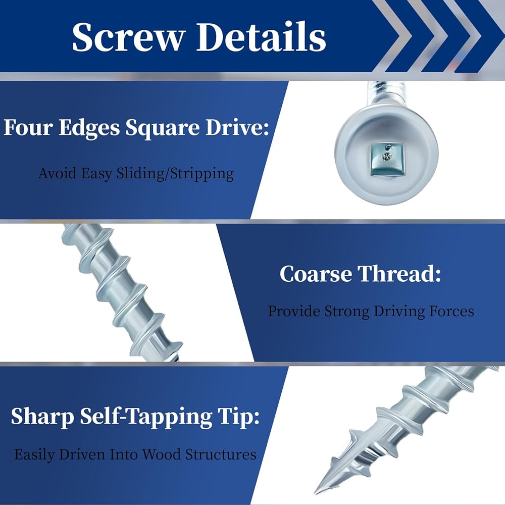 【Square Drive Head】: Deep square pocket hole screws have a wide contact surface with drive bit, 4 square edges reduce the drive torque and avoid stripping during the drive work