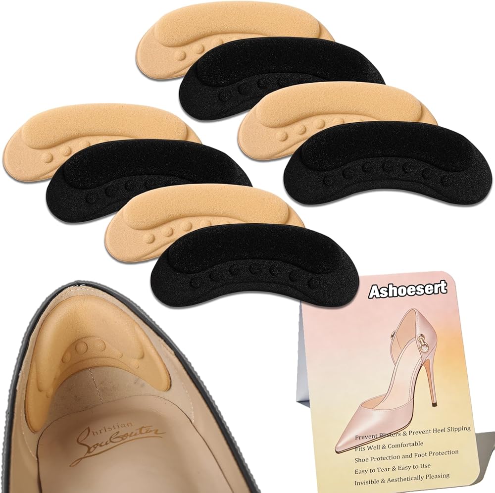 [4 Pairs Value Pack for Everyday Use] Ashoesert heel grips include 4 pairs (8 pieces) of durable heel cushion inserts, sufficient for daily replacement and sharing with family or friends. Universal design fits most shoe types for women and men, such as high heels, flats, leather shoes, boots and sneakers.