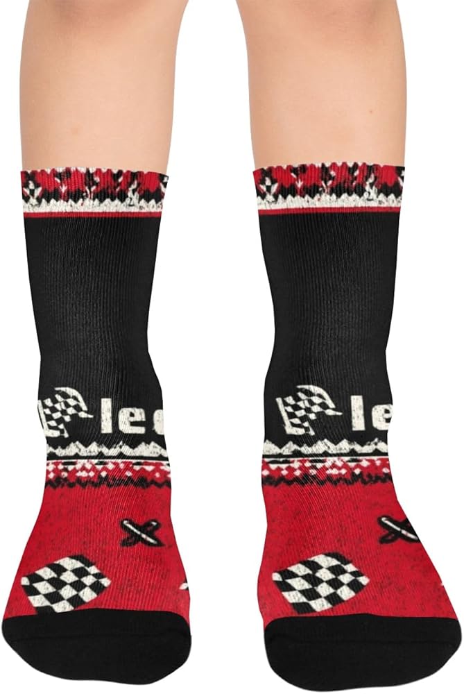 Red Race Flag Pattern Hiking Socks - Toddler Boys & Girls Warm Thick Thermal Winter Crew Socks for School, Daily Wear & Outdoor Activities