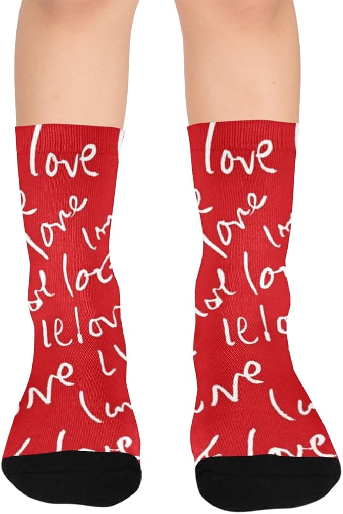 Vivid Red Big Love Hiking Socks - Toddler Boys & Girls Warm Thick Thermal Winter Crew Socks for School, Daily Wear & Outdoor Activities