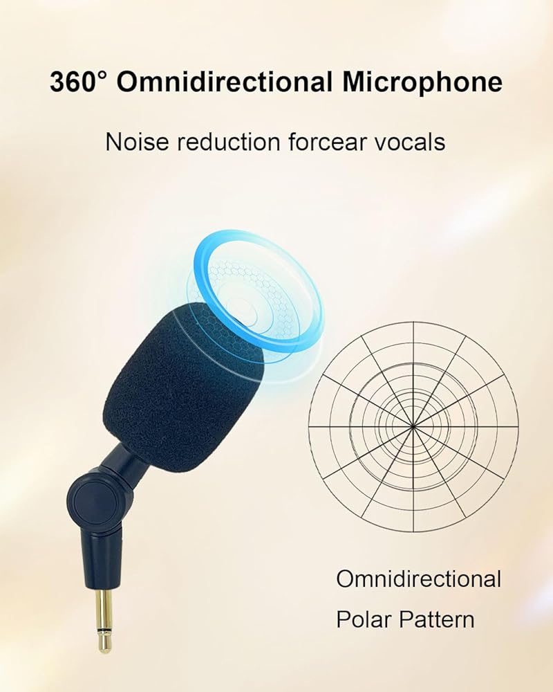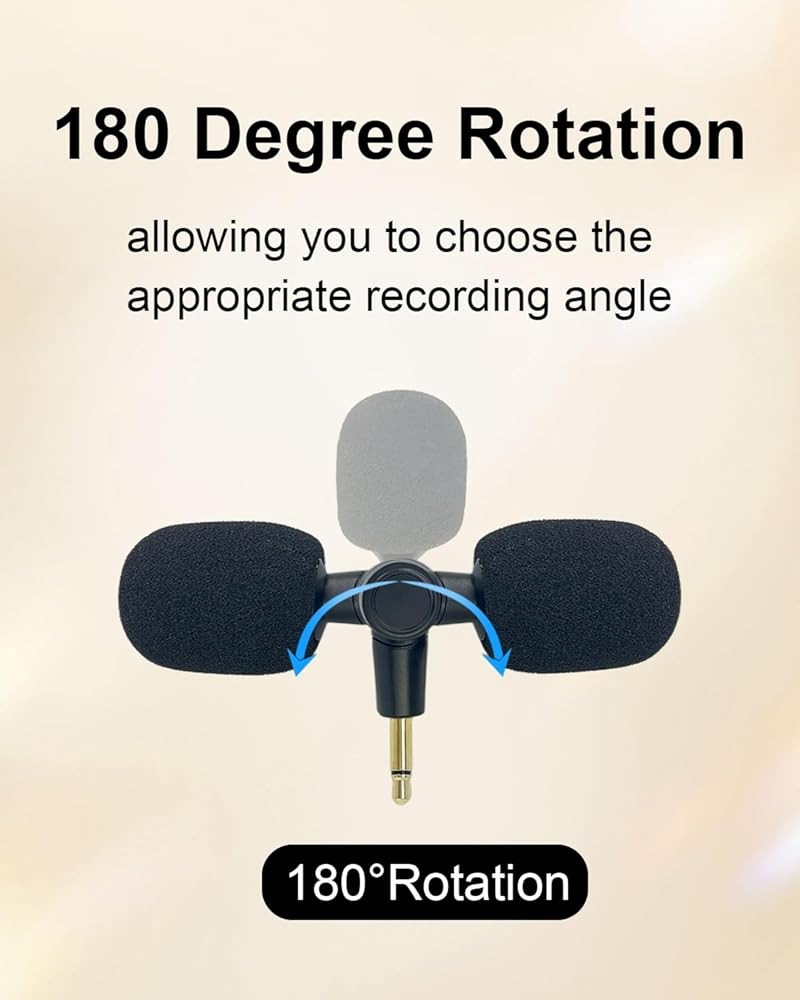 180°Adjustable and Portable:The mini omnidirectional microphone has a built-in rotating mechanism that supports 180° rotation, allowing you to choose the appropriate recording angle.Please note that the microphone is relatively small, 8cm/3.14in, so please take care not to lose it.