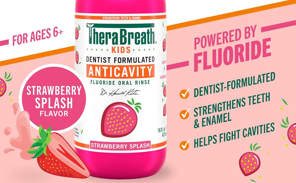 Dr. Harold Katz created the TheraBreath formulas in 1993 for his own family. That's why TheraBreath Kids Mouthwash contains no artificial dyes, no parabens, and no alcohol. This anticavity mouthwash is vegan, gluten free, and made with certified organic flavor. We believe your child's mouthwash should only contain what's truly needed and nothing else. With that in mind, TheraBreath Kid Mouthwash contains a sodium fluoride active ingredient to help support strong, healthy teeth and reduce the formation of cavities. It's the same sodium fluoride the dentist uses for your child's fluoride treatment. Our alcohol-free formula doesn't burn or irritate and works instantly. We're so confident in the effectiveness of TheraBreath Oral Rinses that we back them up with our 100% guarantee. If you're not satisfied, contact us within 30 days of purchase for a full refund. TheraBreath: It's a better mouthwash, satisfaction 100% guaranteed!