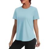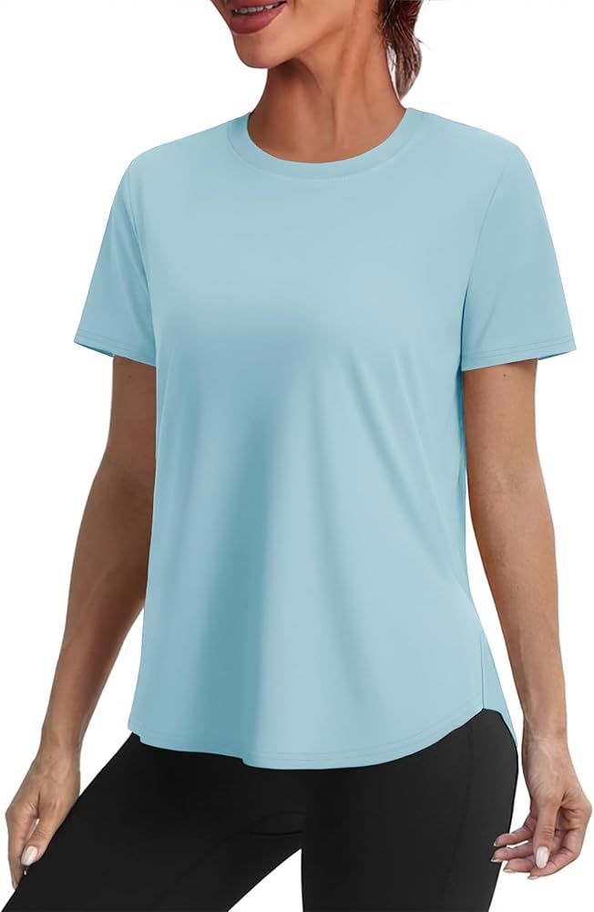Fabric & Comfort: Crafted from 88% polyester and 12% spandex, this t shirts for women offers lightweight, soft, and stretchy fit. Its moisture wicking and quick dry properties keep you cool and fresh during workouts or any outdoor activities