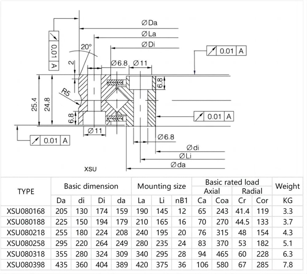 1PCS XSU080398 360X435X25.4 Cross Roller Bearing Industrial Joint Rotary CNC Machine Tool Turntable Bearings