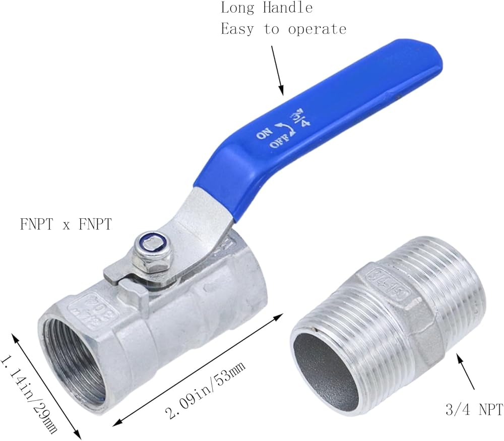 2 Pcs 3/4 Inch NPT ball valves, 2 pcs stainless steel threaded straight-through joints and 1 pcs raw material belt