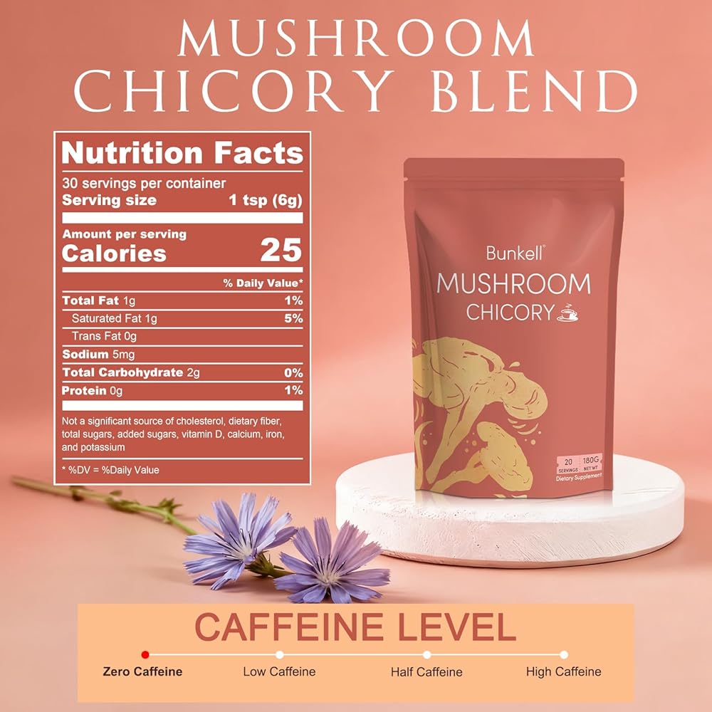More Healthier Coffee Alternative Drink: Mushroom Chicory! Known to have zero caffeine than regular coffee, the amount of caffeine in Bunkell mushroom chicory is 0mg. Especially those sensitive to caffeine, also because reishi can support sleep health. All in all, it may improved your sleep quality friendly.