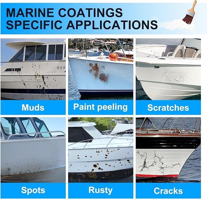 Specialty Repair:UNDERTHECLOUD marine paint is ideal for repairing chips, cracks, pits, gouges, scratches, and holes on various watercraft including jet skis, canoes, kayaks, sailboats, speedboats, yachts, dinghies, surfboards, and decks.It helps maintain vessels in optimal condition against abrasion and extreme weather conditions