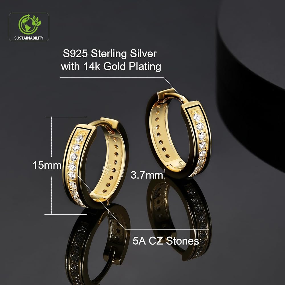 [KEEP SHINY FOREVER] Every CZ stone is hand-selected 5A quality, which are totally clean and transparent, similar shining with real diamonds. We adopt 0.3μm gold plating for 5 times, so it won't turn your skin green and assures no color fading for 3-5 years. It can ensure each earring reflects plenty of light to create that bling-bling effect