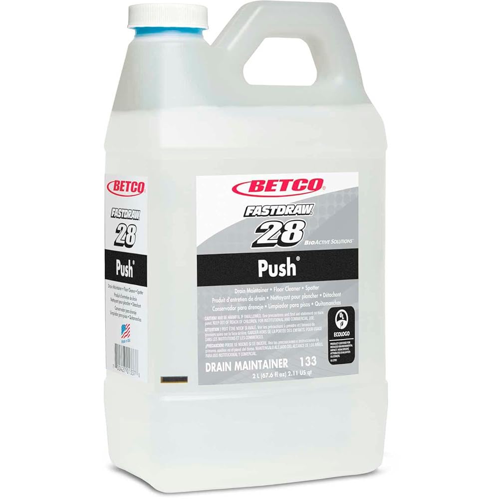 Use Bioactive Solutions Push as a drain maintainer, floor cleaner and spotter. Use in grease traps, septic tanks, drain lines, down pipes, carpet odors and restroom floors. This stable liquid suspension of cultured bacteria and malodor counteractants is capable of digesting complex proteins, starches, fats, oils and greases, paper, vegetable gums, hair and other organic waste. The enzyme-producing bacteria is more economical and efficient than using massive doses of enzymes alone to degrade waste and eliminate the source of odors. Bioactive Solutions Push is noncorrosive, nonflammable, nonacid and noncaustic. As part of the FastDraw system, it is numbered (FastDraw 28) and color-coded to eliminate misuse. Spill-proof bottle helps prevent chemical contact with the cleaning staff. Patented technology uses two metering tips for low-flow and high-flow dilution. Curved siphon tubes on the FastDraw Dispensers (sold separately) allow complete product evacuation, eliminating waste.