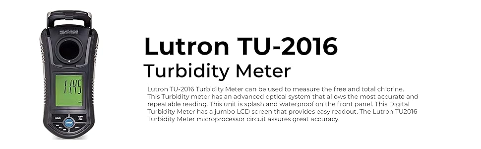 Supply Scope: 1 Unit of TU-2016 Turbidity meter ntu with an Instruction Manual and a Factory Calibrated Certificate | Applications: Test municipal water, Drinking water, Swimming water, Wastewater treatment, Industrial processes, Environmental Monitoring, Research on aquatic ecosystems, Food purposes, Beverage Industries.