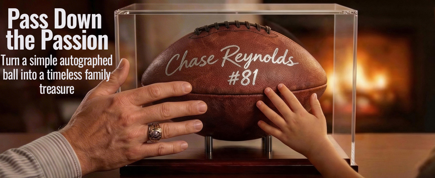 [360° CRYSTAL-CLEAR DUSTPROOF VIEW]: Experience unobstructed, high-definition viewing from every angle. The precision-fit construction between the crystal-clear acrylic and the solid wood base forms an effective dustproof seal, keeping your football pristine and maintenance-free while highlighting every detail of the signatures and leather texture.