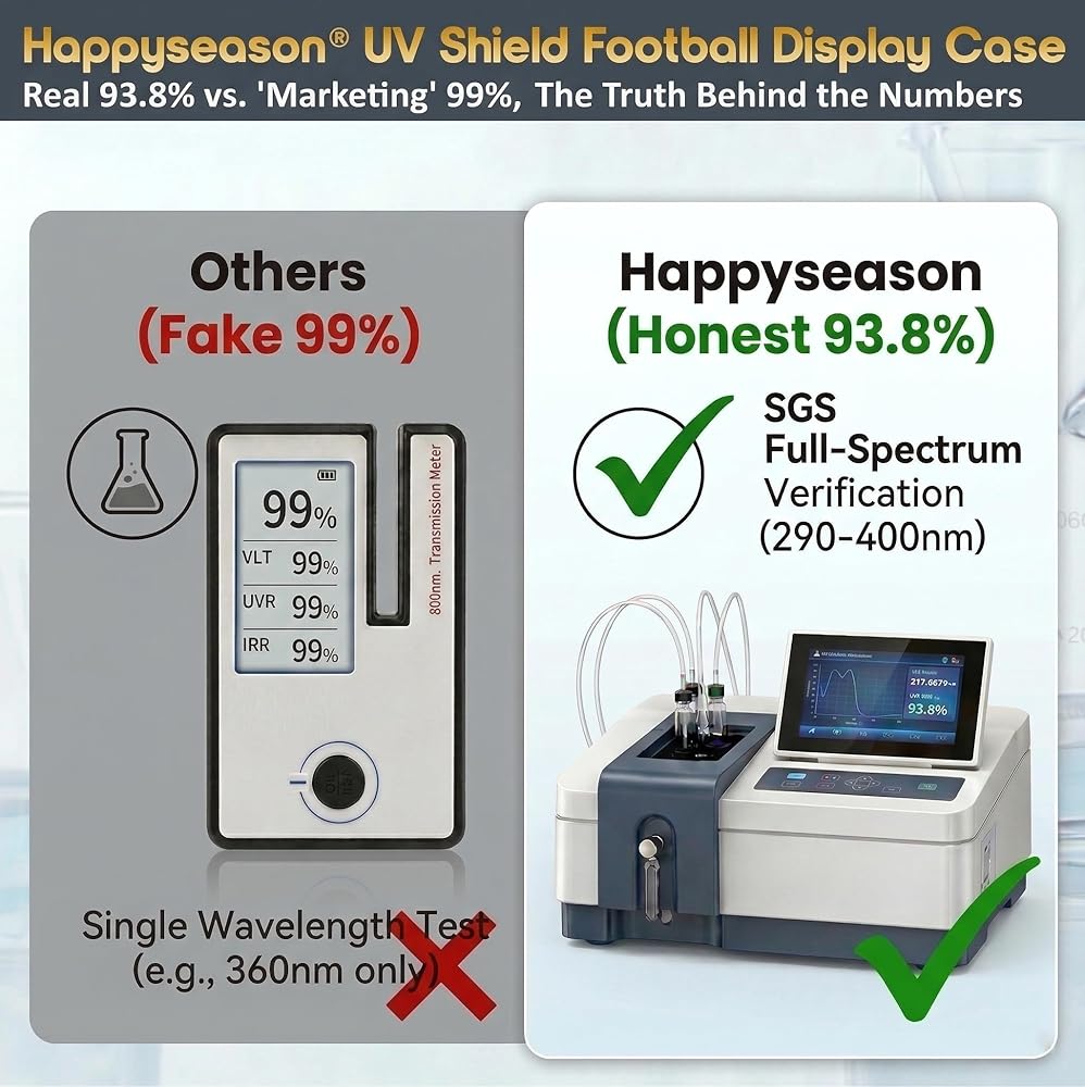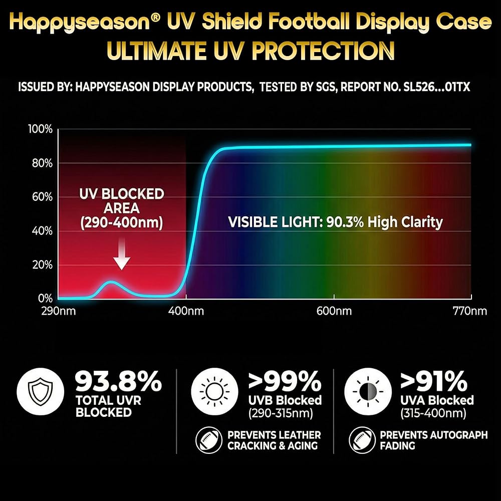 • [حماية من الأشعة فوق البنفسجية بنسبة 93.8% تم اختبارها بواسطة SGS]: يتميز بغطاء أكريليك من فئة المتاحف تم التحقق منه بواسطة SGS لمنع 93.8% من الأشعة فوق البنفسجية الضارة. يمنع هذا الدرع المميز كرة القدم الثمينة الموقعة وشعارات الفريق وجلد الخنزير من البهتان أو الاصفرار، مما يضمن بقاء تذكاراتك في حالة جيدة من الدرجة الاستثمارية لعقود من الزمن.