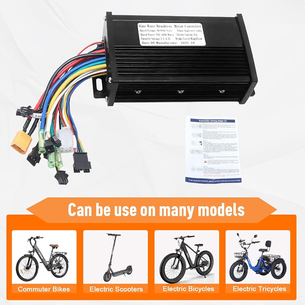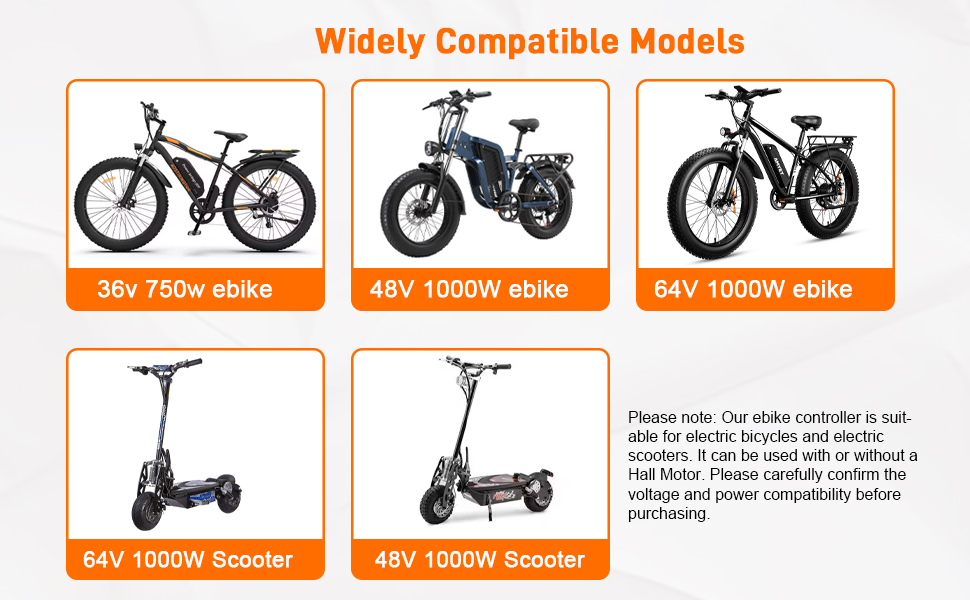 750W/1000W EBike Controller: This high-performance ebike controller(and electric scooter motor controller) works seamlessly with 36V/48V/64V systems, including 48V 1000W controllers for high-power setups. Designed for brushless motor controllers(with or without Hall sensors), it's a perfect controlleror upgrade for your e-bike or scooter