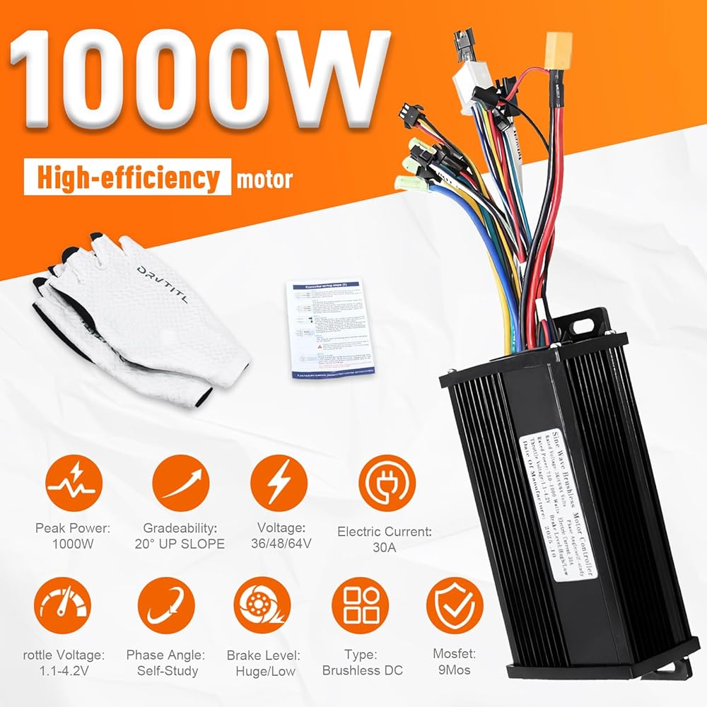 Powerful 30A Output: With a 30±1A max current (15A rated), this 48V 1000W controller provides strong torque and stable power for hills, commutes, or off-road rides. Perfect for brushless motor controllers needing reliable performance on any terrain
