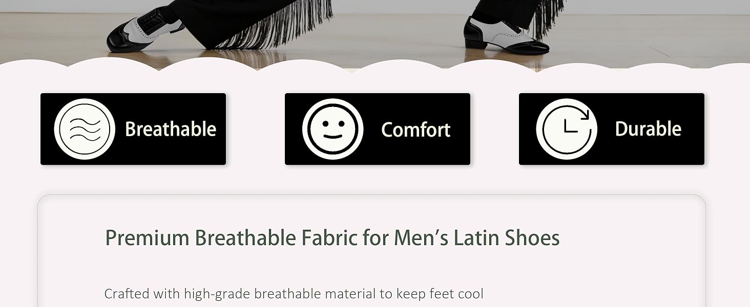 Perfect for dancing Ballroom, Latin, Rhythm, Cha Cha, Waltz, Tango, Swing, Salsa and some other special occasion such as indoor leisure dance, party, practice, competition, etc.