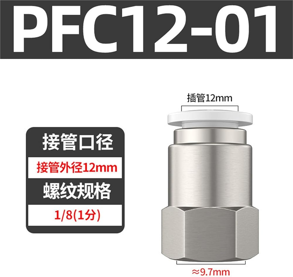 Pneumatic Tracheal Quick Connector PCF6-01/8-02/10-03 Insert Internal Thread Straight Through Black And White 1Pcs(白色PCF12-01(高端))