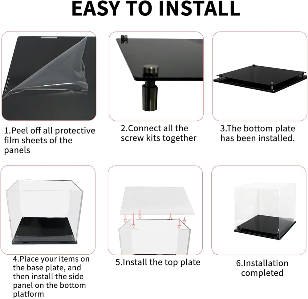 Easy & Secure Self-Assembly: Achieve a professional-grade display in minutes. This football helmet case is designed for easy assembly, featuring stainless steel screw feet that ensure a secure and stable connection between the base and the acrylic cover, providing long-lasting durability.NOTE: Before assembling, please tear off the protective film on the acrylic frame.