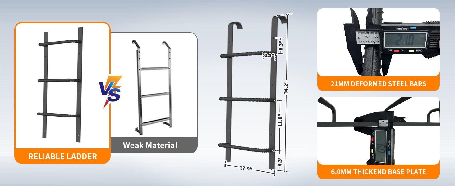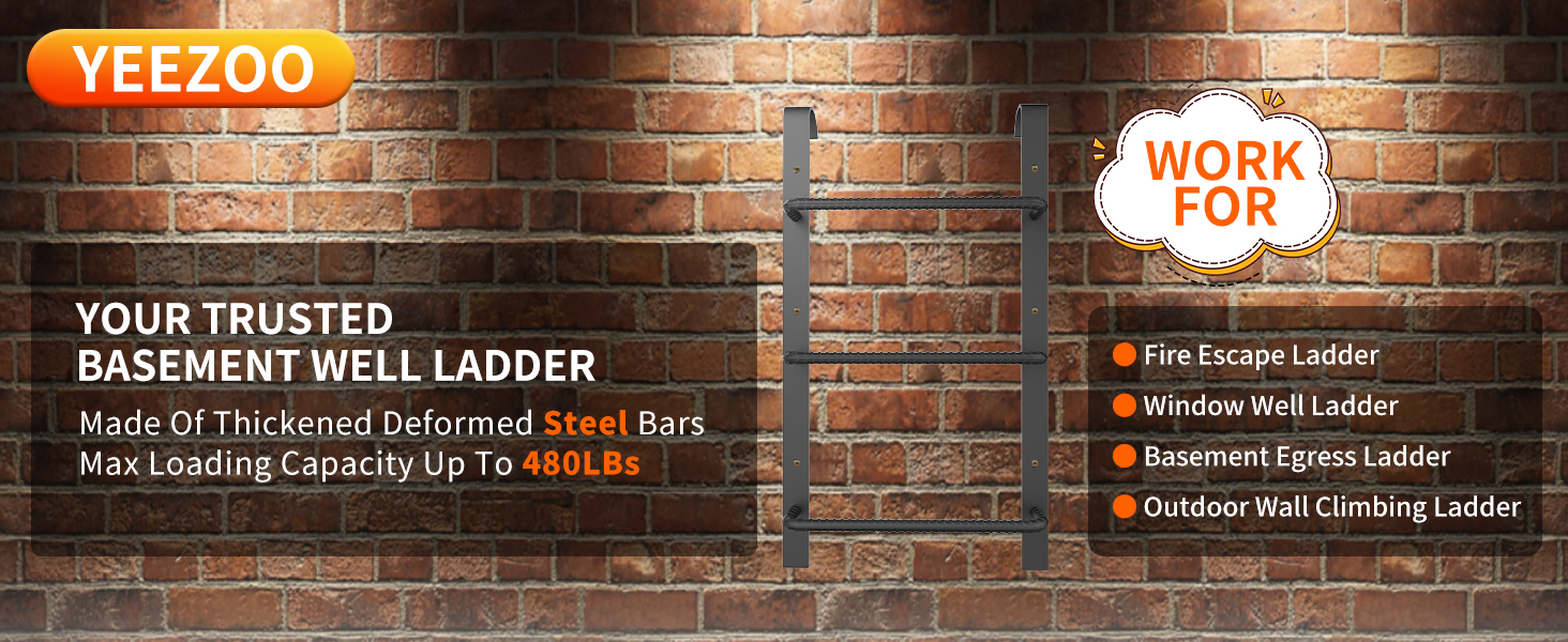 [Reliable egress ladder]: Made from high-quality steel material, φ21mm steps & 6mm thickness base plate make our window well ladder is built to withstand max 480LBs loading capacity and ensure your safety during emergency moments.