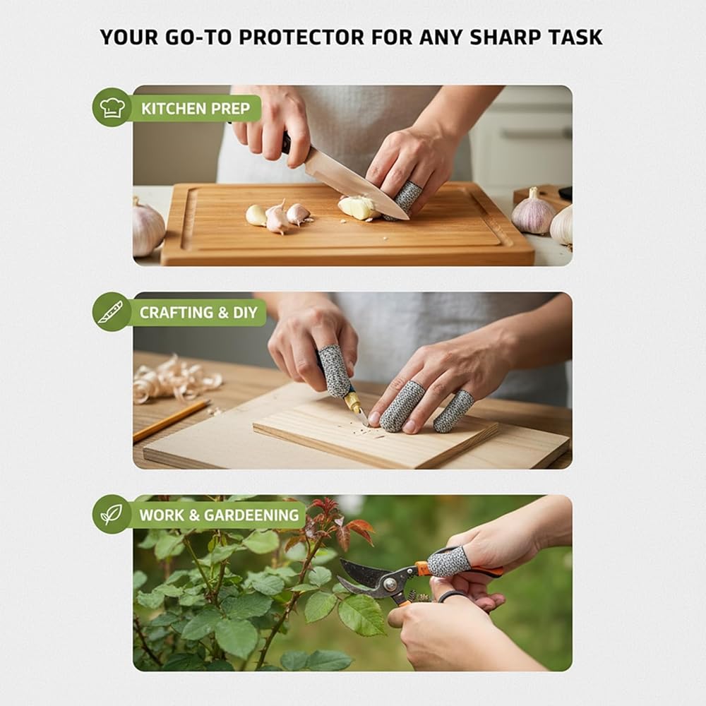 VERSATILE USAGE: Widely utilized for kitchen prep, gardening chores, sculpture, or DIY crafts. Shields existing wounds or calluses. Essential for woodworkers, chefs, and hobbyists alike