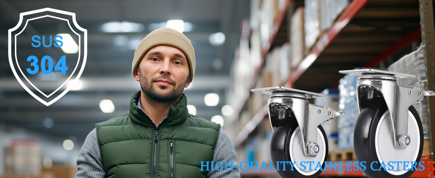 Ideal for Sanitary Environments: Perfect for environments that require regular cleaning or prioritize hygiene, our stainless steel casters are ideal for sanitary, restaurants, food service,healthcare, laboratories, Bakeries and residential environments