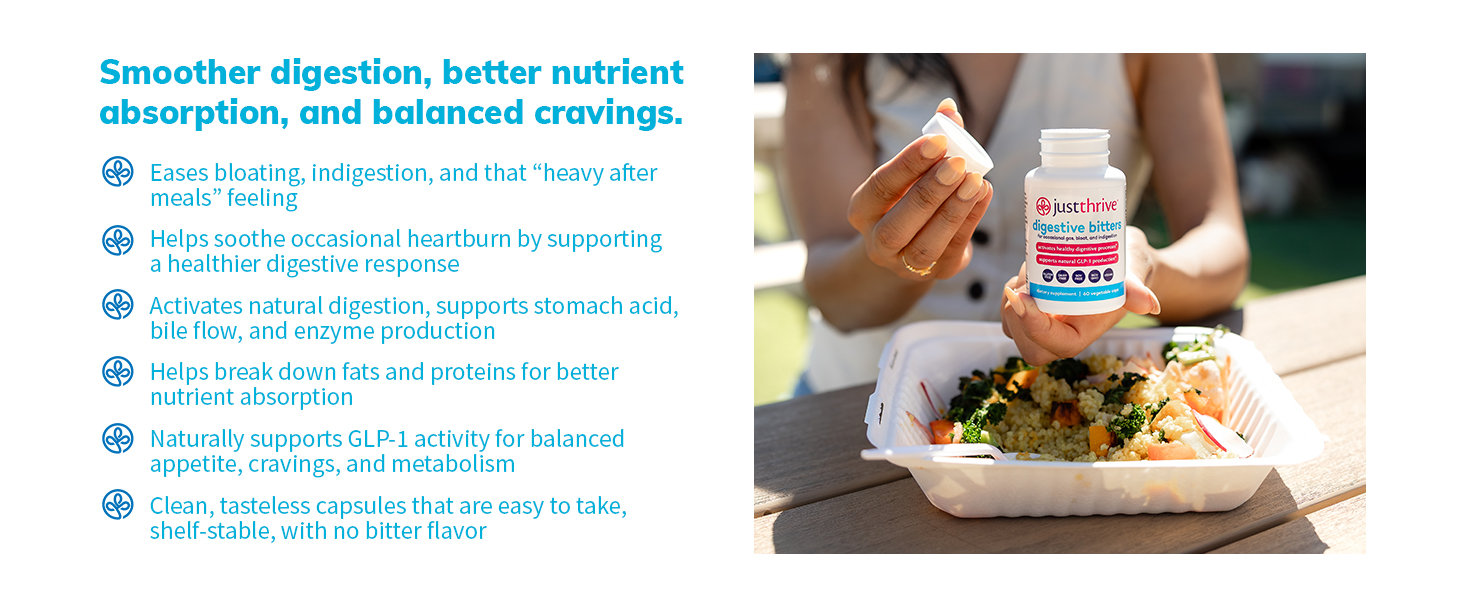 Crafted for Every Routine: Just Thrive Digestive Bitters are vegan-friendly and formulated without GMOs, dairy, soy, sugar, salt, nuts, or gluten making them versatile for a variety of lifestyles. With a clean and thoughtfully designed formula, they promote a comfortable digestive experience and overall wellness by supporting a balanced internal system