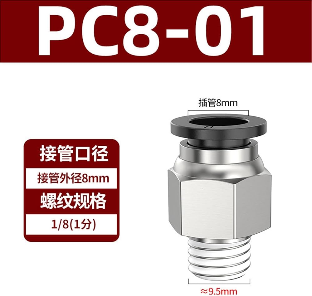 Pneumatic Copper Quick Connector Thread Straight PC4-M5 8/10-02 Trachea 6-01/12-04 Black And White 1Pcs(黑色PC8-01)