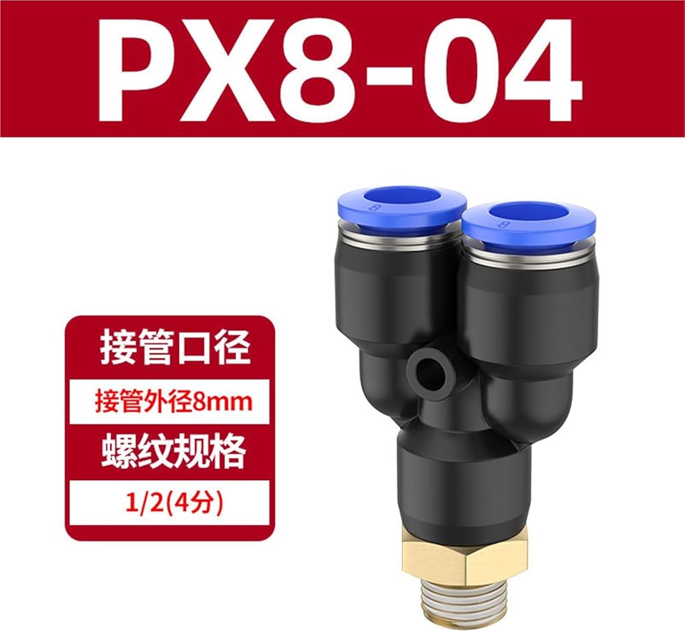 Y-shaped Three-way Quick Connector PX4-M5/6-01/8-02 Pneumatic External Thread 1Pcs