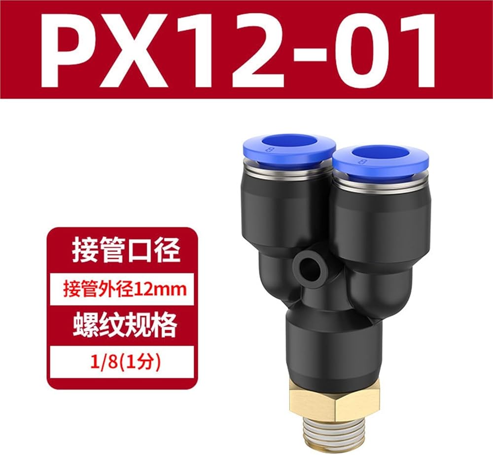 Y-shaped Three-way Quick Connector PX4-M5/6-01/8-02 Pneumatic External Thread 1Pcs(蓝色PX12-01)