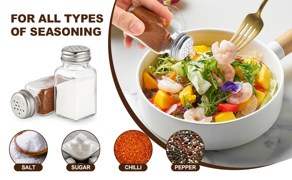 [Elegant Rust-Proof Design]Experience pure taste with our elegant shaker. The clear glass body prevents odors from sticking, while the premium stainless steel top guarantees it will never rust, ensuring your spices always taste fresh.