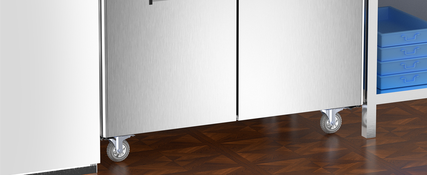 [Solid Construction] Expertly crafted for long-lasting performance, Coolski sandwich prep table refrigerator boasts a heavy-duty stainless steel exterior and interior. With thickened insulation foam and 4 easy-glide wheels (2 with brakes), this refrigerated salad prep table delivers consistent cooling and effortless mobility. Each door features a built-in lock, providing added security for your valuables.